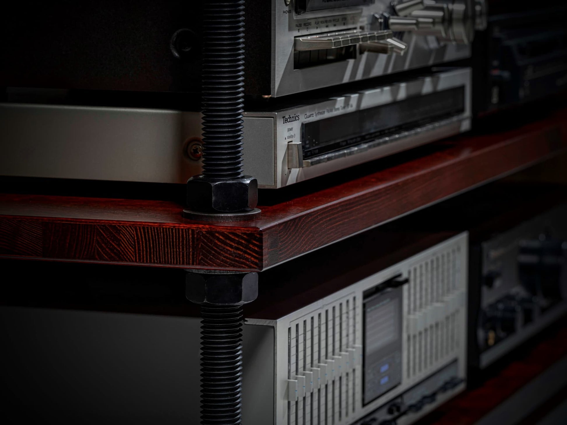 Upgrade your listening space with this handcrafted low-profile HiFi audio rack, designed for serious audio system. Built with industrial-grade steel hardware and premium Baltic birch–veneered blockboard shelves, this rack blends durability, minimalist style, and modern audio-furniture design.