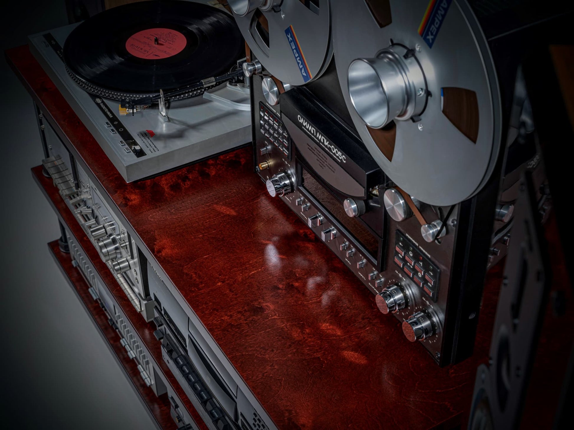 Low Profile HiFi Audio Rack – Adjustable Turntable Stand & Record Player Shelf | Heavy-Duty Stereo Component Console with Black Hardware